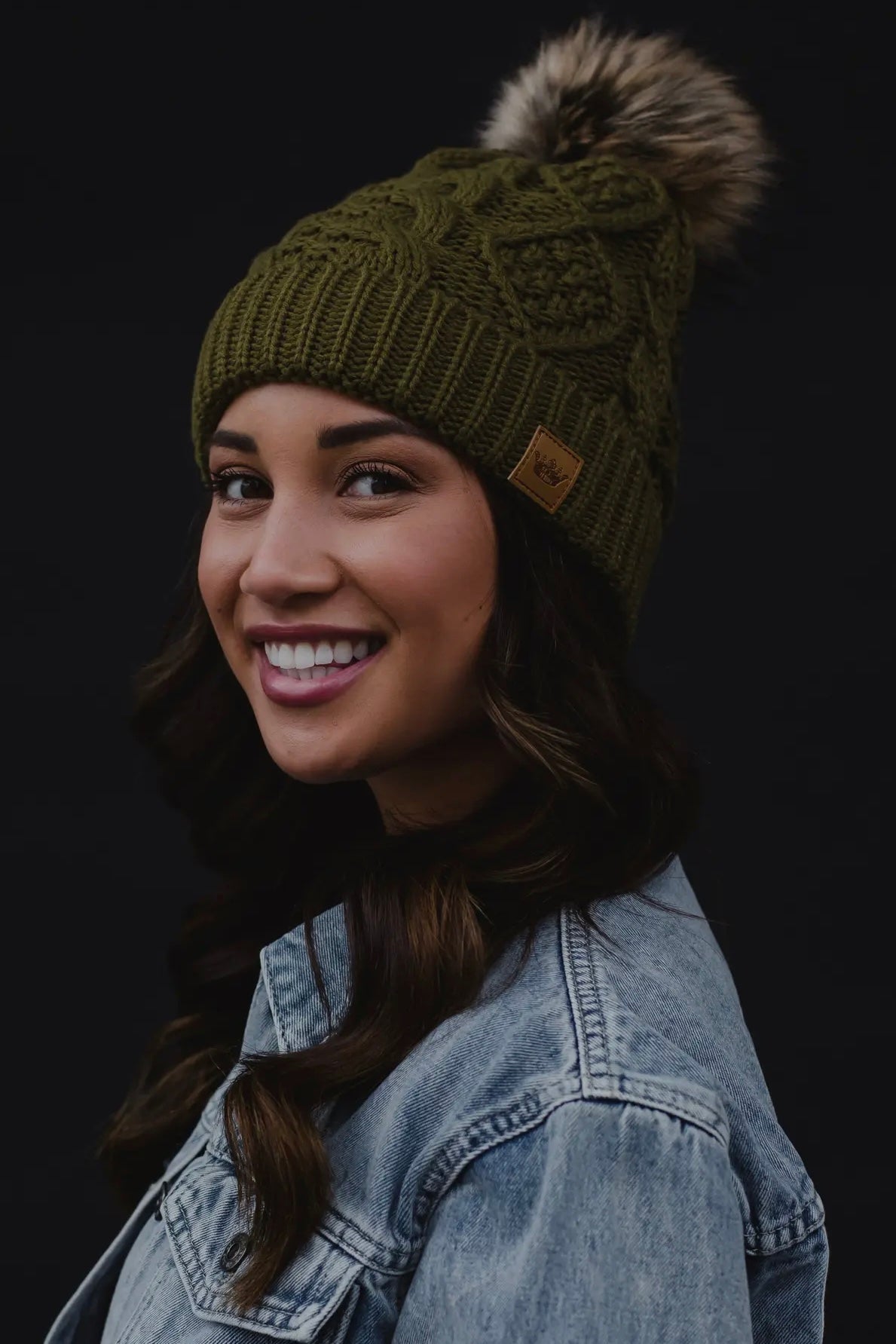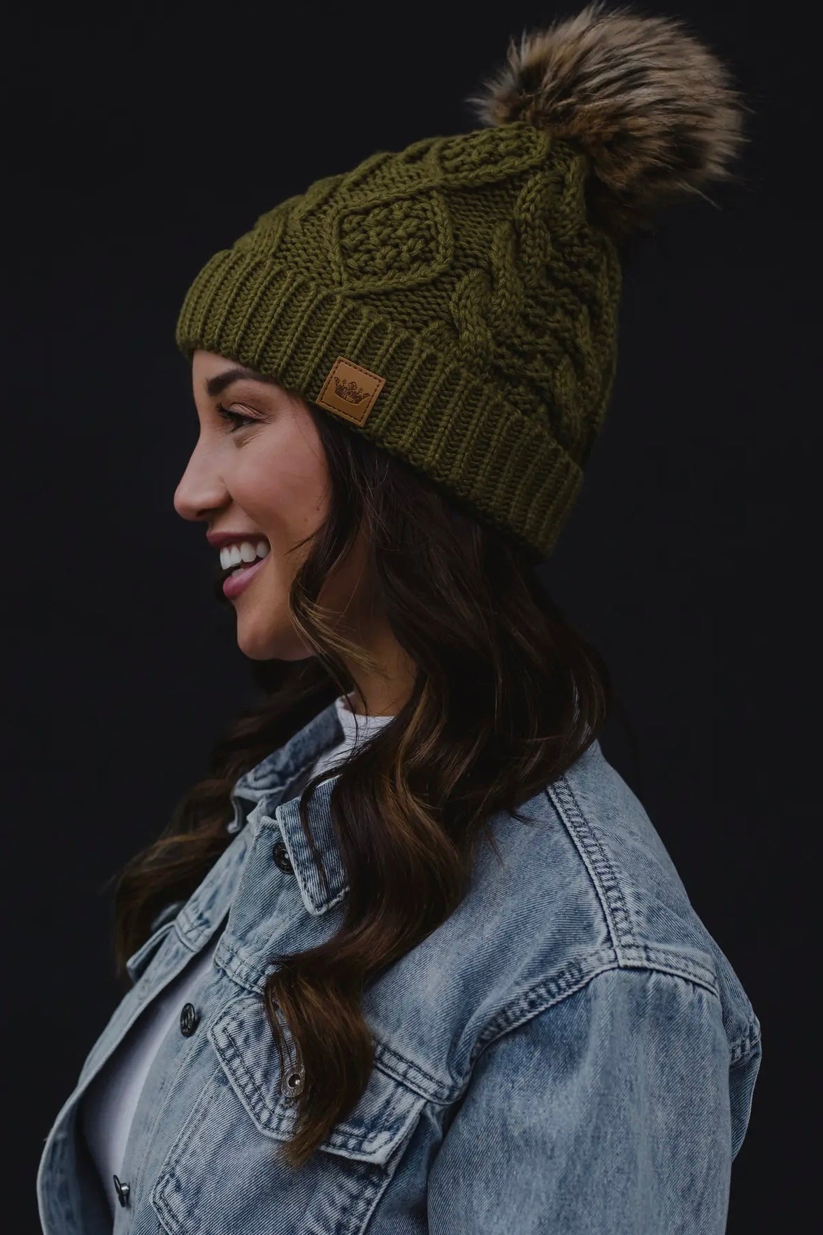 Stay warm in style with our Cable Knit Pom Hat! Enjoy the comfort of its fleece lining, and the convenience of the cable knit pattern for easy styling. Stay cozy all season long!