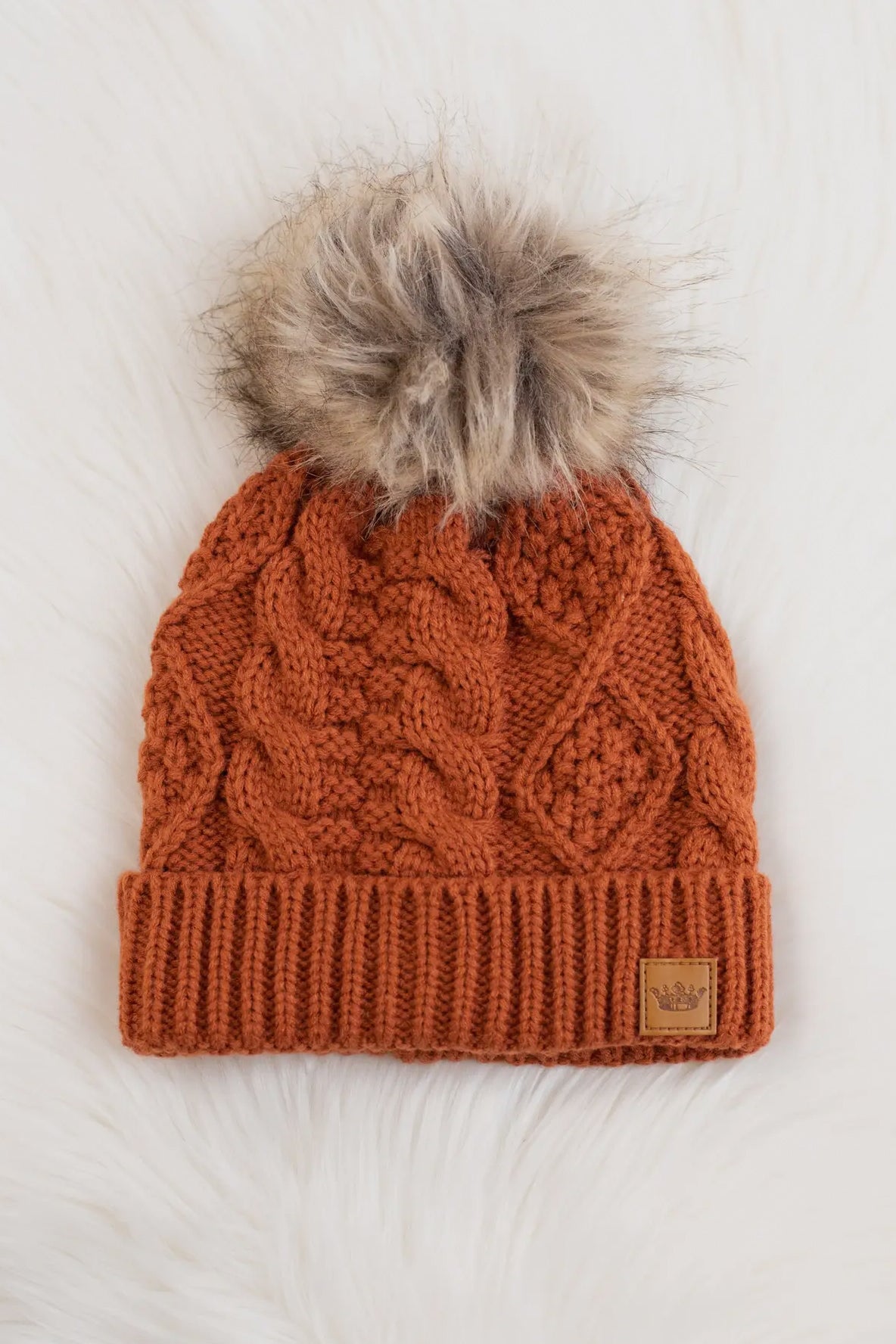 Stay warm in style with our Cable Knit Pom Hat! Enjoy the comfort of its fleece lining, and the convenience of the cable knit pattern for easy styling. Stay cozy all season long!