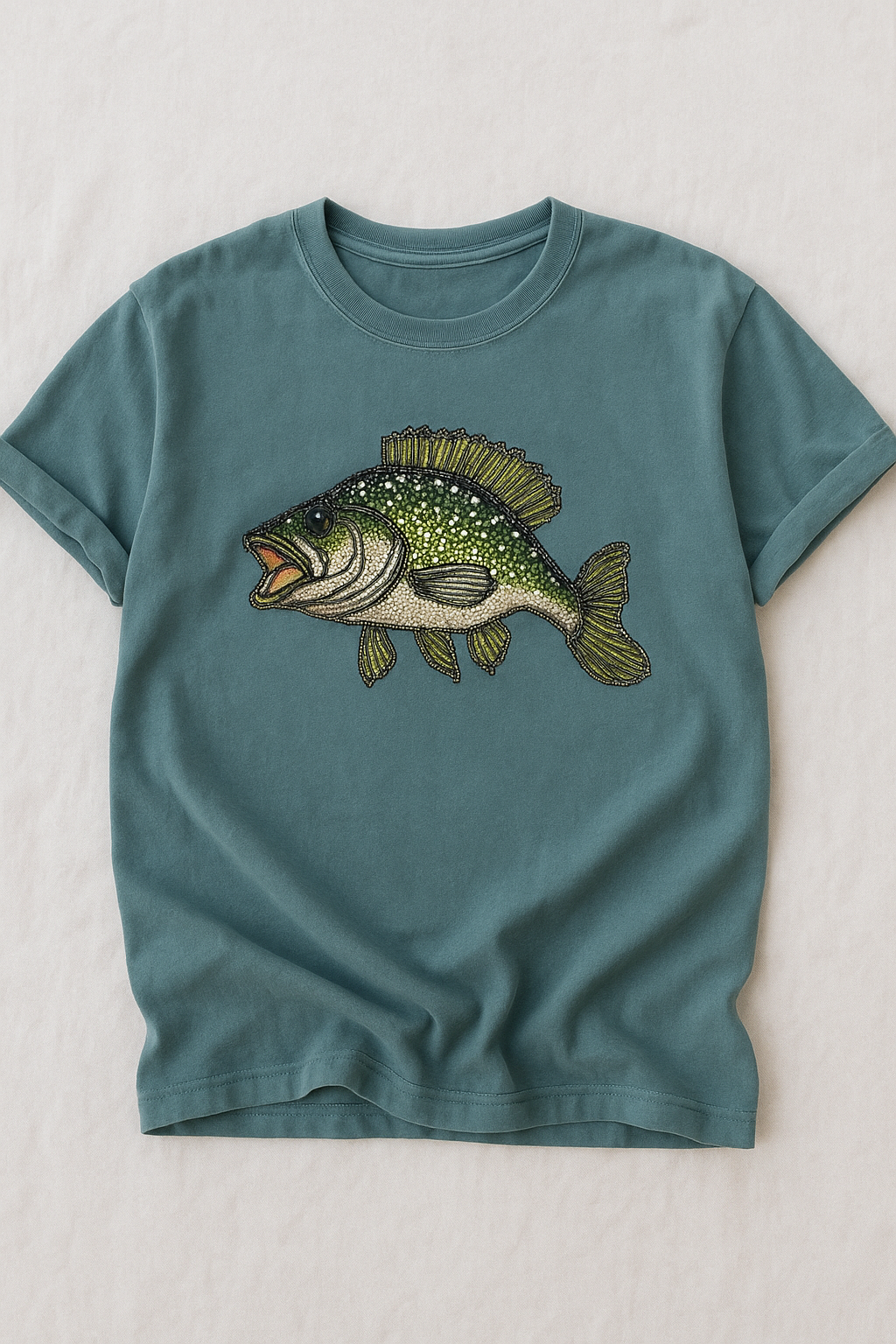 Make waves with our Catch of the Day Tee ... a vintage-washed Comfort Colors favorite that brings a little sparkle to your laid-back lake days. This washed lake-blue tee features a faux-beaded fish graphic that looks intricately hand-detailed but feels perfectly soft and wearable. With its relaxed, unisex fit and worn-in texture, this tee captures that effortless "just got back from fishin" energy we love. Pair it with cutoff shorts and sneakers for casual days, or throw it over leggings and flannel for cozy, cabin-core vibes. Available in store and online.