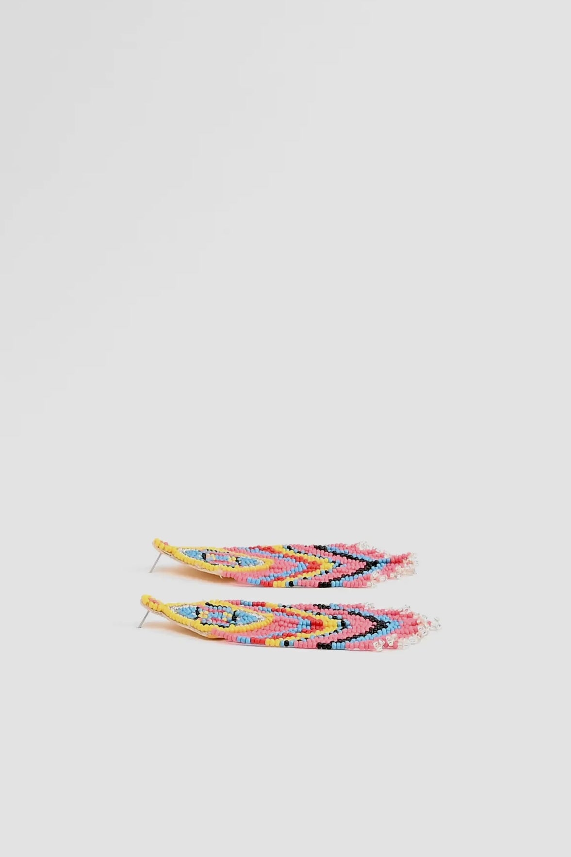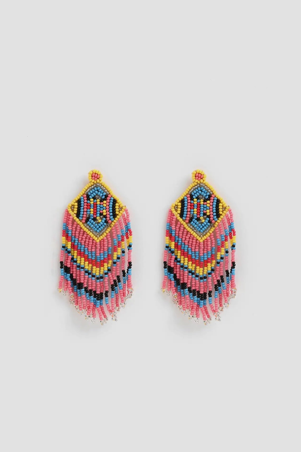 Beautiful Chloe Earrings Hand beaded Vibrant shades of Coral, Yellow and Blue.