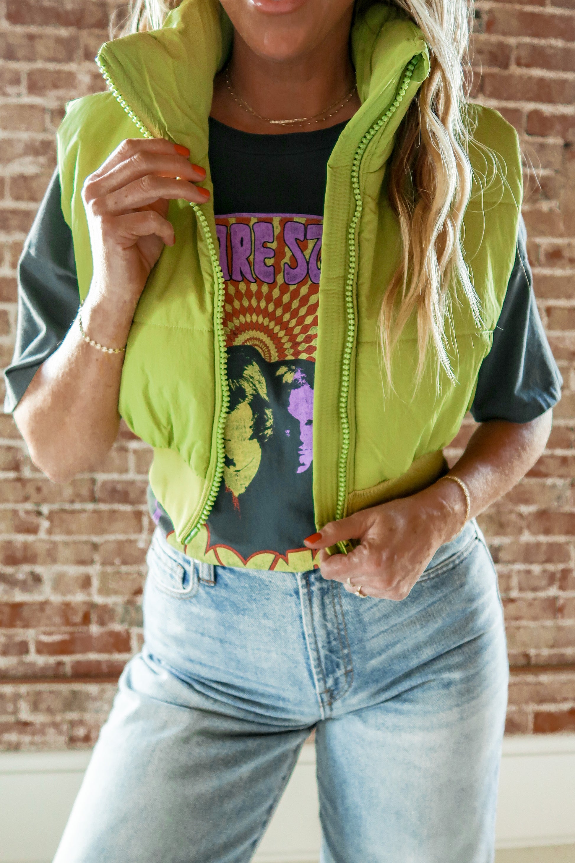 Funnel Neck Cropped Puffer Vest- Stay warm when temperatures dip with this cozy puffer vest featuring a zip-up front and a funnel neck to provide extra insulation. The cropped style keeps you trendy while still keeping you toasty!