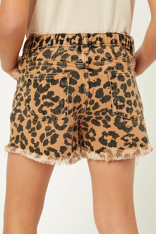 Girls Leopard Cutoff Shorts- As if these little gals need anymore sassiness?! We couldn't help ourselves tho... These cutoffs feature a denim material, classic 5 pockets, elastic waist with button and zip fly and distressed cutoff hems! So fun!
