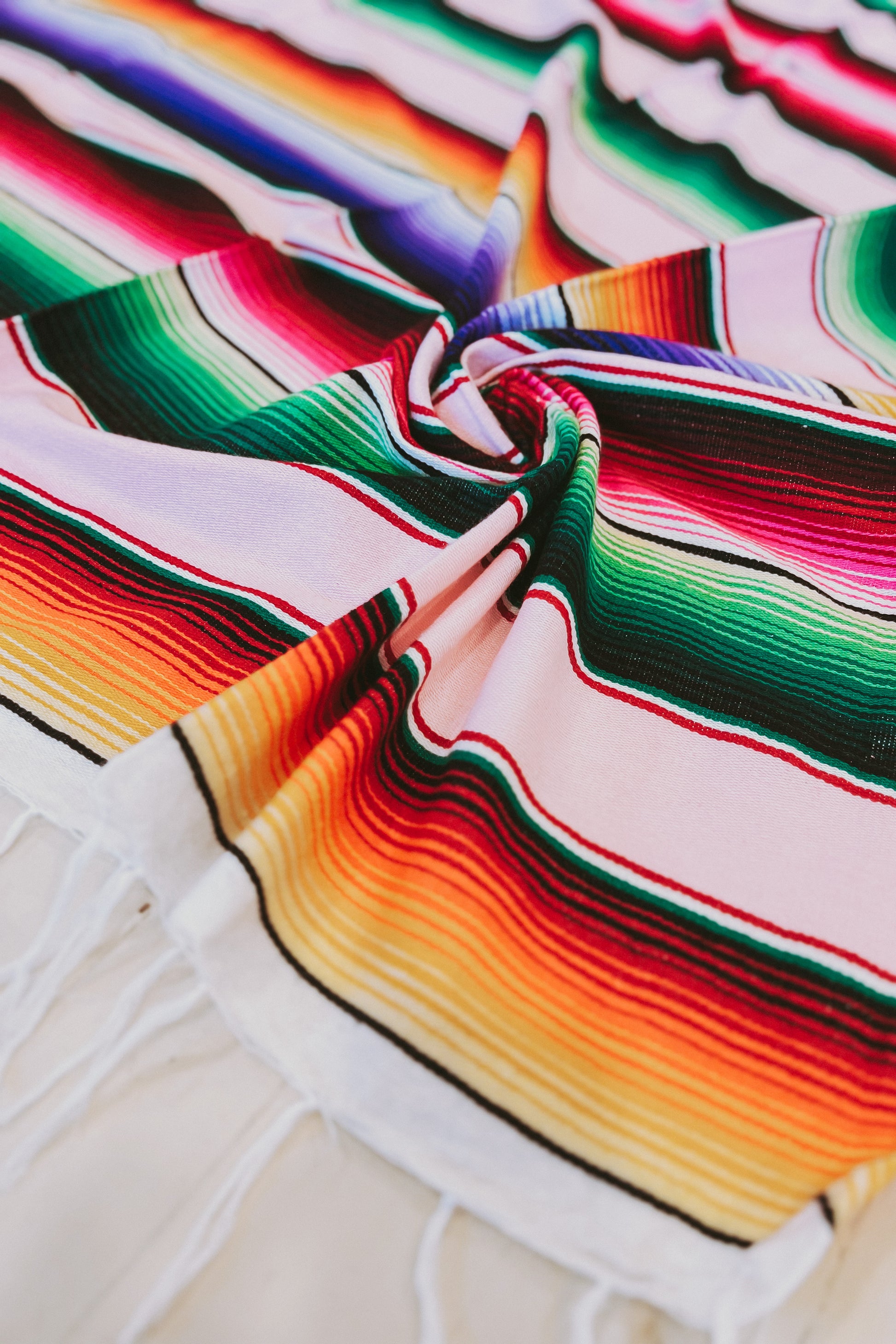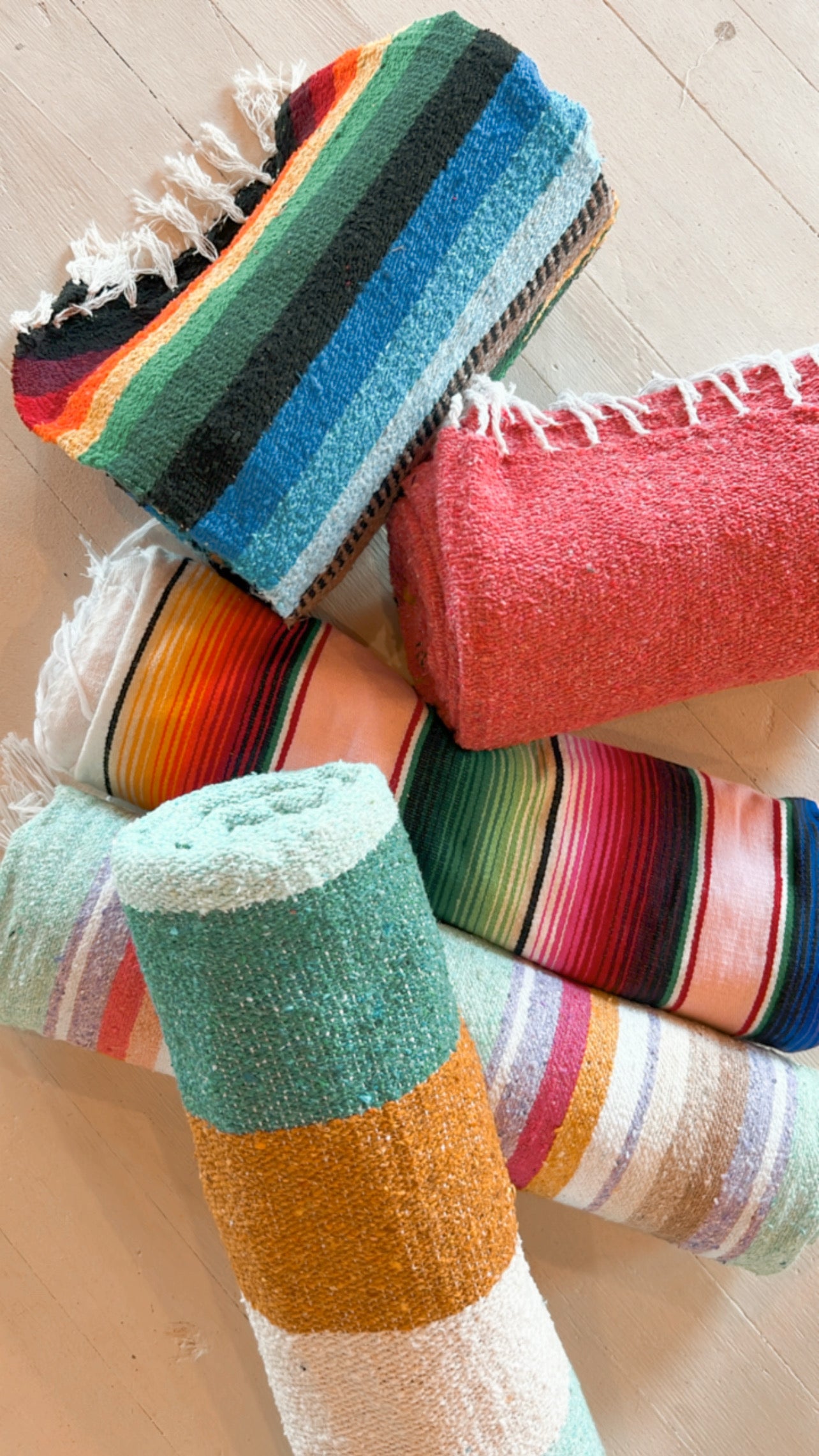 Yoga, picnic, home, beach, travel, outdoors and more! The BRIGHT colorful stripes, and knotted fringe will add to all your sunny day fun!