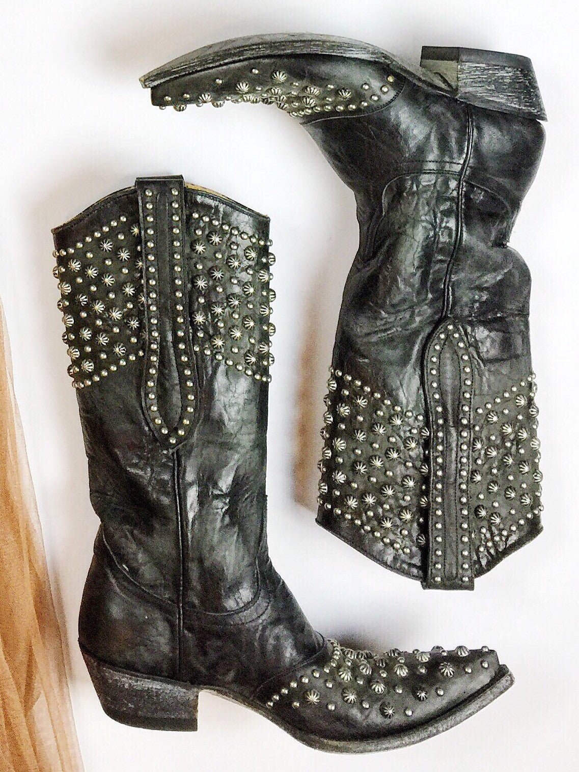 6.5 Women's Old Gringo Black Studded Boots. These boots have a snip toe with a leather sole. They have so much detail and personality..They are a MUST have!